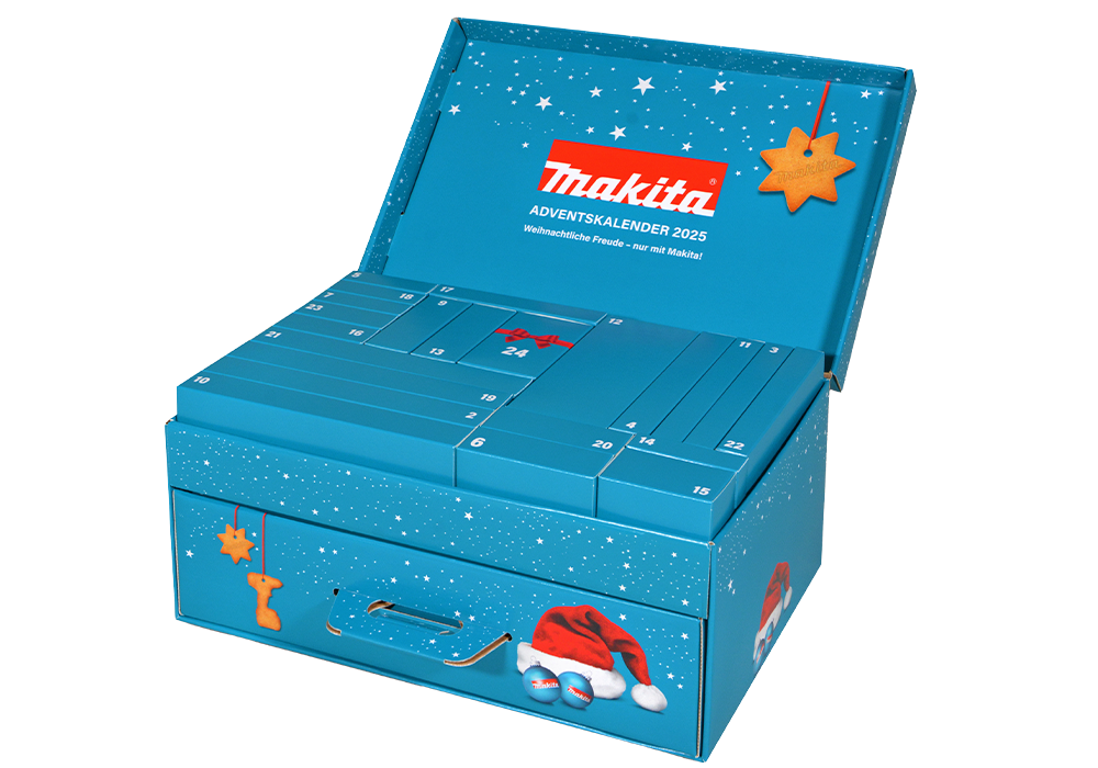Die festliche Jahreszeit steht vor der Tür und wir haben etwas ganz Besonderes für Sie vorbereitet. Der Makita Adventskalender 2025 lässt das Herz eines jeden Makita Fans höherschlagen. Freuen Sie sich auf 24 Tage voller spannender Zubehör-Überraschungen und exklusiver Makita Fanartikel. Ab sofort bei Ihrem Makita Fachhändler erhältlich!