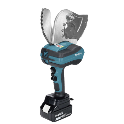 Akku-Kabelschneider mit einstelllbarer, automatischer Rücklauffunktion. Geschlossener Typ, zum einfachen Trennen von ACSR-Leitungen (Freileitungen) bis 54 mmø. Ausgestattet mit einer Arbeitsleuchte mit Nachglimmfunktion.