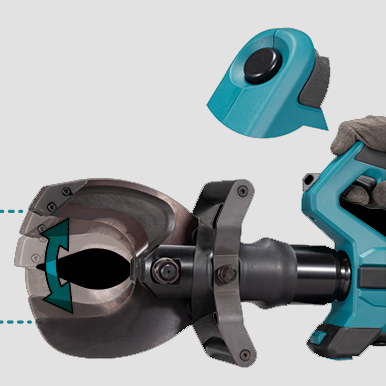 Akku-Kabelschneider mit einstelllbarer, automatischer Rücklauffunktion. Offener Typ, zum einfachen Trennen von Elektrokabeln bis 50 mmø an jeder Position. Ausgestattet mit einer Arbeitsleuchte mit Nachglimmfunktion.