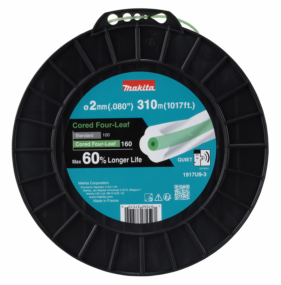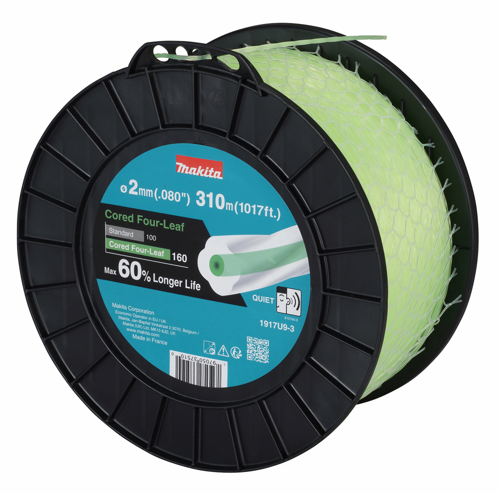 Dank der aerodynamischen Form, bilden die Mähfäden Four-Leaf einen geringeren Luftwiderstand, als ein runder Mähfaden. Das macht sie besonders leise. Der Kraftaufwand wird zudem verringert und speziell bei Akku-Sensen und -Trimmer wirkt sich diese Eigenschaft auf eine längere Akku-Laufzeit aus.Die Mähfäden Cored Four-Leaf sind in unterschiedlichen Längen und Durchmessern von 1,65 mm über 2,0 mm, 2,4 mm bis hin zu 2,7 mm verfügbar und eignen sich damit für niedriges Gras bis hin zu leichtem Gestrüpp.