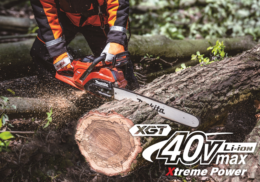Die leistungsstarke 40V max. XGT Akku-Kettensäge UC030G in der Signalfarbe Rot sorgt insbesondere im Forst- und Rettungseinsatz für maximale Sichtbarkeit. UC030G ist besonders für schwere Anwendungen wie das Fällen, Ablängen und Entasten großer Holzstücke ausgelegt und liefert mit dem empfohlenen 8,0 Ah Akku BL4080H maximale Leistung – vergleichbar mit einer 50 cm³ Benzin-Kettensäge.